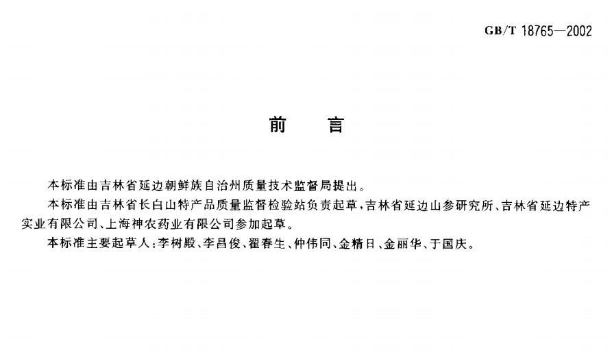 野山参分等质量GBT18765-2002